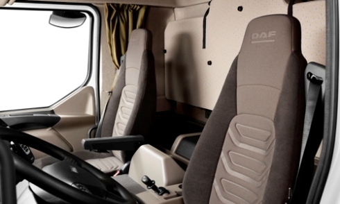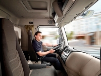 Die breite, tief nach unten gezogene Frontscheibe und die schmalen Holme ermöglichen eine hervorragende Sicht, und die grün getönten Scheiben tragen dazu bei, den Innenraum angenehm kühl zu halten. Die Spiegelanlage mit vier Außenspiegeln bietet ein größeres Sichtfeld und damit mehr Sicherheit. Die Vierpunkt-Fahrerhausfederung des LF sorgt für maximalen Federungskomfort. Dank niedriger Geräuschpegel ermüdet der Fahrer weniger schnell, was ebenfalls der Sicherheit zugute kommt. |