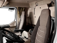 Beim Öffnen der Tür fällt sofort die hochwertige Innenausstattung des LF auf. Styling und Verarbeitungsqualität sind auf einem ähnlich hohen Niveau wie in einem Pkw der gehobenen Mittelklasse. Die verwendeten Farbtöne und Materialien sorgen für eine angenehme, komfortable Arbeitsumgebung.