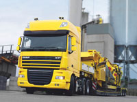 Für Transportunternehmen, die nicht ständig einen Dreiachser brauchen , kann DAF den XF 105 in einer Ausführung mit besonders leichten 17,5-Zoll Vorlaufachse liefern. Vorteil: vorübergehende Erhöhung der Tragfähigkeit um 4,4to. (zZGG 44 t). Diese verhindert eine mögliche Überlastung der Antriebsachse infolge von Teilbeladung oder Konzentration der Ladung im Stirnwandbereich und beugt unntigem Reifenverschleiß vor. Um die Auswahl der Zugmaschinen zu vervollständigen, sind 3-Achs- und 4-Achszugmaschinen mit Tandemantrieb speziell für Schwertransporte erhältlich.